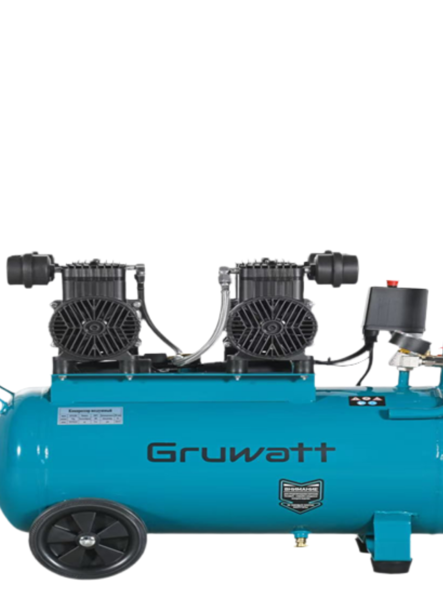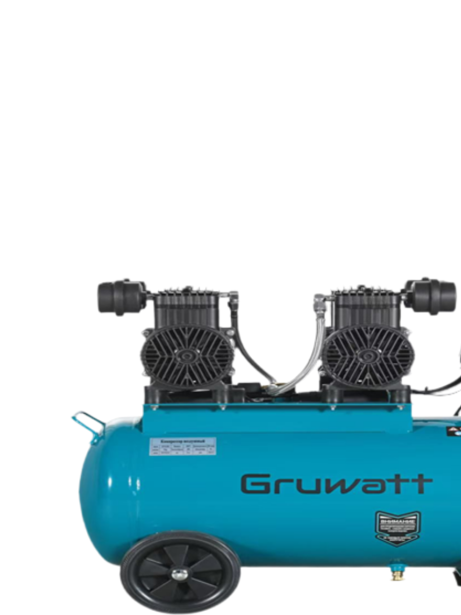 Малошумный безмасляный компрессор GRUWATT 2.2кВт, 500 л/мин,50л оптимально подходит для комфортной рабочей среды в лаборатории, клинике или на производстве.