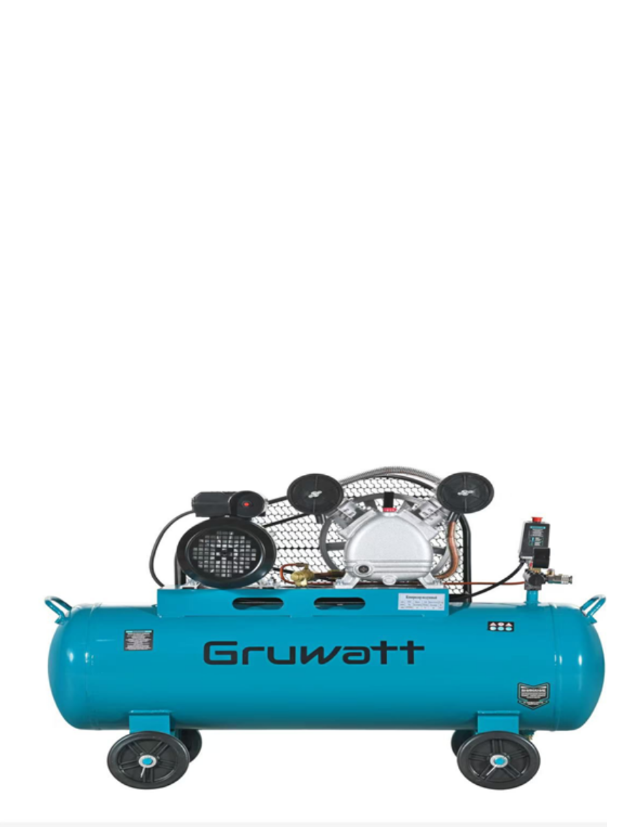 Компрессор GRUWATT КР100-2-рассчитан на интенсивную эксплуатацию благодаря ременному приводу. Предназначен для подачи сжатого воздуха в различных отраслях промышленности. Прочные колеса обеспечивают удобное передвижение по рабочей площадке. Агрегат оснащен манометрами для измерения давления в ресивере, а также рабочего давления, что позволяет контролировать весь рабочий процесс. Безопасность во время работыРеменная передача компрессора GRUWATT КР100-1.закрыта специальной решеткой, которая защищает от грязи, пыли и случайных повреждений. Работа без потерь.Рапидное соединение позволяет быстро подключить шланг, исключая потери давления. Для удобства перемещения по рабочей площадке компрессор оснащен колесами
