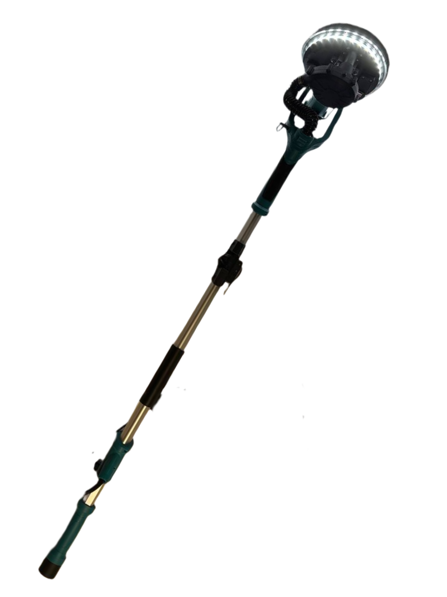 Меняя зернистость используемых шлифовальный кругов, можно провести грубую и среднюю шлифовку. Эксцентриковая шлифовальная машина с телескопической ручкой будет удобно работать над шлифовкой потолка.